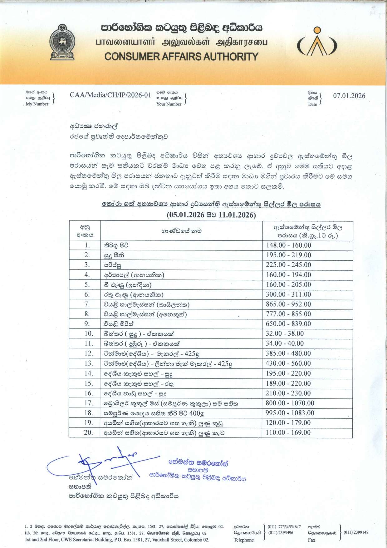 Indicative Prices of Selected Essential Food Commodities 07 January 2026